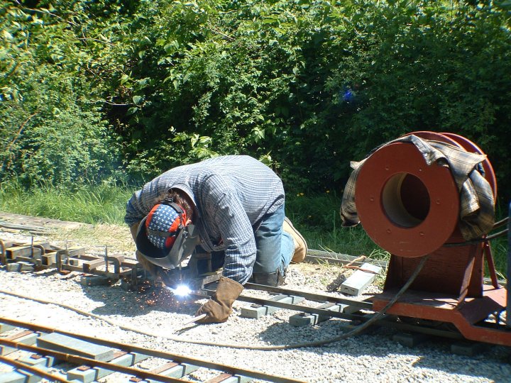 Two images of John Yardley welding up the huge main bridge structure. Track laying will commence after this bridge is painted and set in place. It is required to join the old and new track-age together.