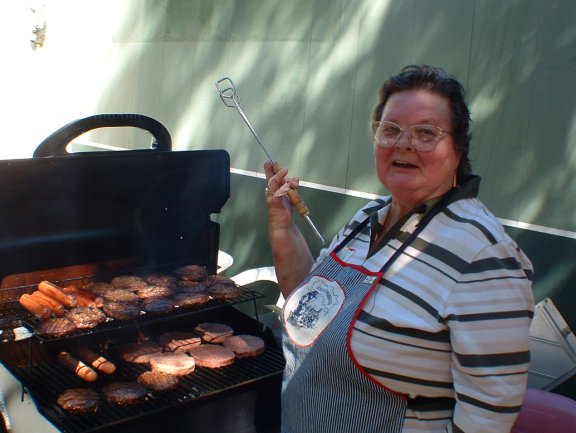 Mary Roy cooking lunch for those attending the annual Mini Rail event