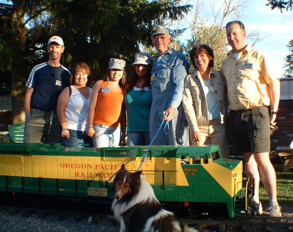Frank driving the Johnson family 2-4-2 on a 62 car train Click here and here to see video clips of this train in action